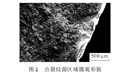 通過電鏡掃描微觀觀察,斷裂源起源于軸頸堆焊層表面,呈多源分布特征,有點裂紋源和線性裂紋源2.1.2 電機軸材質(zhì)分析 對基體進行光譜元素測量,分析結(jié)果示于表 1。分析結(jié)果表明,軸材質(zhì)元素成分分布均勻,無其他缺陷,僅含有少量硫化物、氧化物等冶金缺陷,屬于中碳鋼,對應我國 45#鋼,是電機軸常用推薦材料,分析認為軸材質(zhì)合格,并未對軸斷裂造成影響。