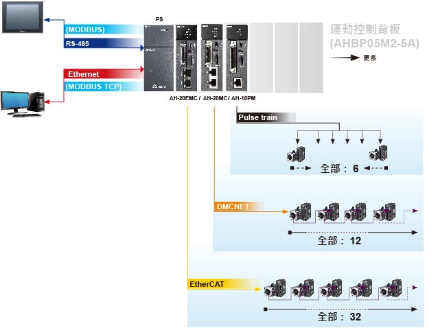 提供 EtherCAT、DMCNET 與 Pulse-train 等運(yùn)動(dòng)控制接口