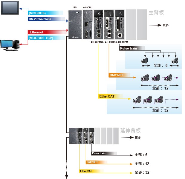 所有的運(yùn)動(dòng)控制模塊都可以安裝在本地端的主背板與延伸背板上